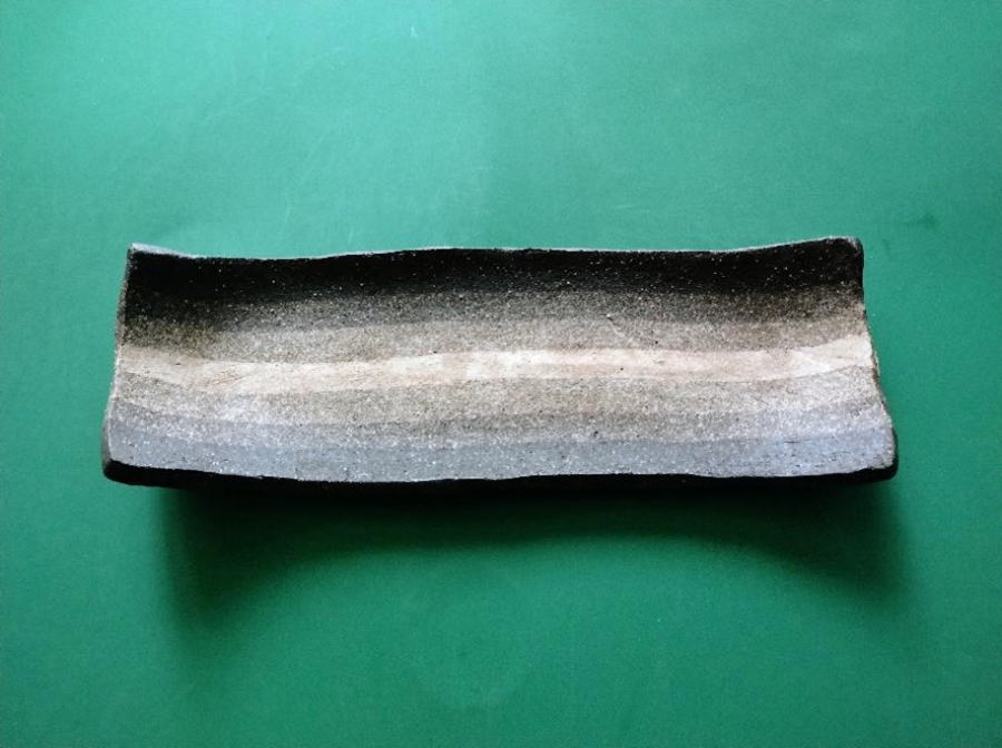 長皿:9x27x0.8cm 25年位前に藤沢の個展で出会った、大和市在住の女性陶芸家の作品です。
