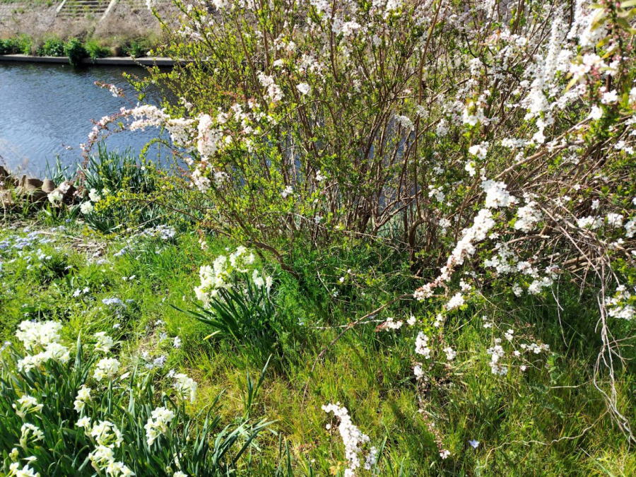 小米花こぼれ落ちたる境川” 3月19日撮る