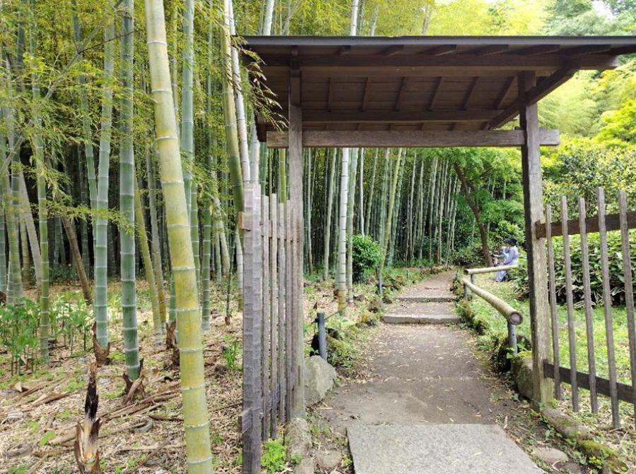 (17)鎌倉英勝寺:荘厳な竹林の中で私はサンドイッチを食べて、しばしの休憩をしました。