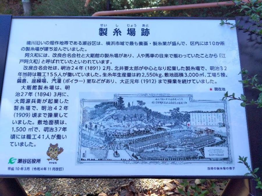 2025年11月22日(4)長屋門公園:長屋門公園の隣には旧製糸工場があったそうです。今は何も残っていないのが残念です。