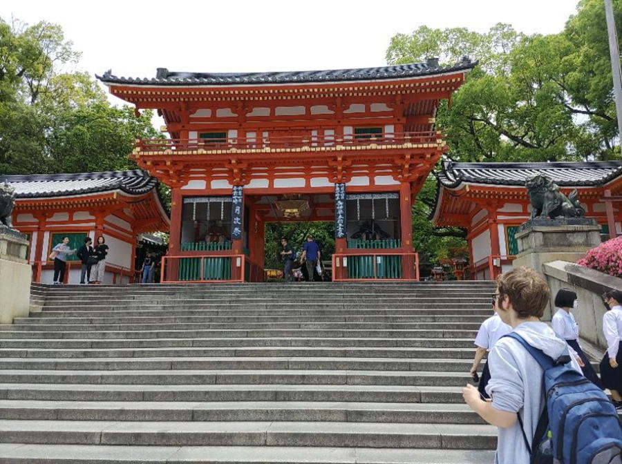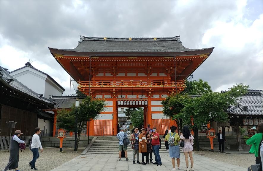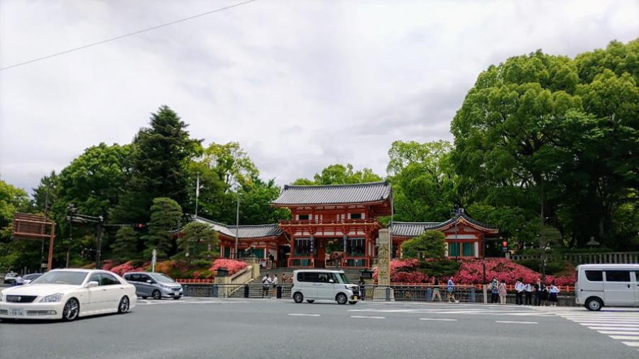 行きたかった神社です。(1)四条通り突き当たりが八坂神社西楼門です。