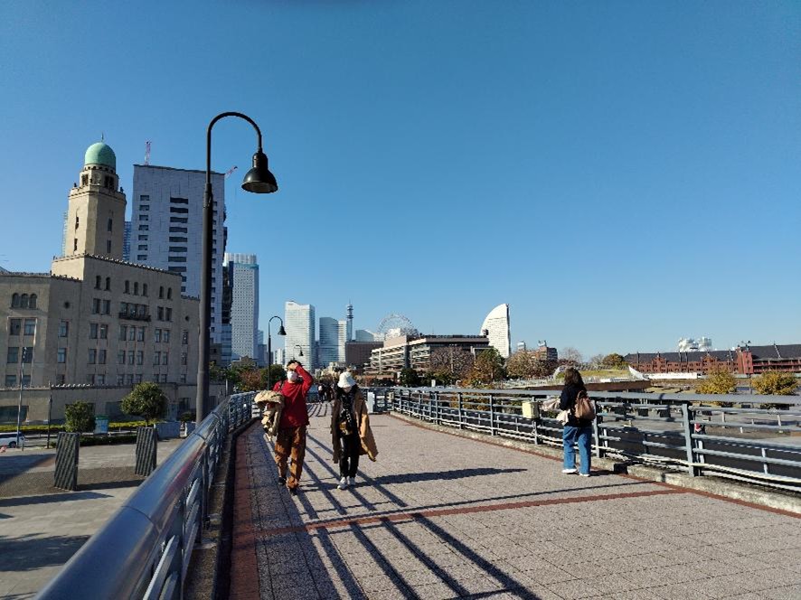 2025年12月2日(2)横浜散歩:象の鼻テラスから飛鳥Ⅲとベイブリッジを撮影