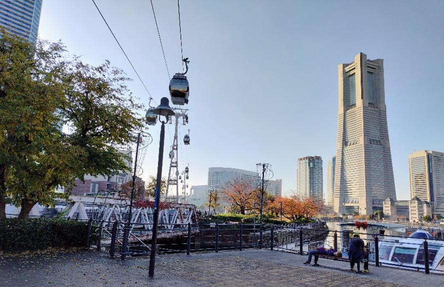 横浜ランドマークタワー・クイーンズスクエア横浜・ヨコハマグランドコンチネンタルホテル・真ん中によこはまコスモワールドがあります。