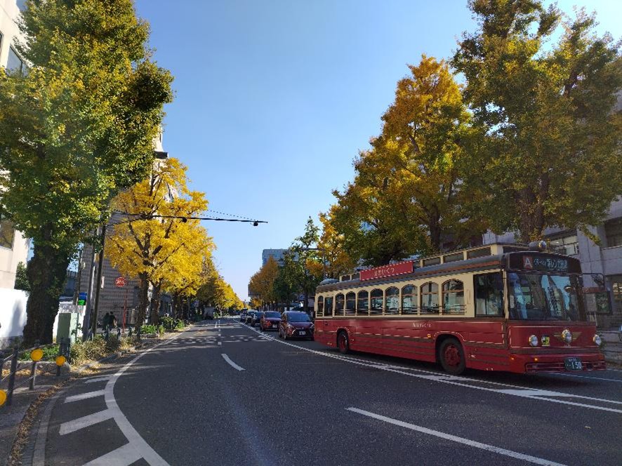 (10)横浜散歩:山下公園通りの銀杏並木と赤いバス