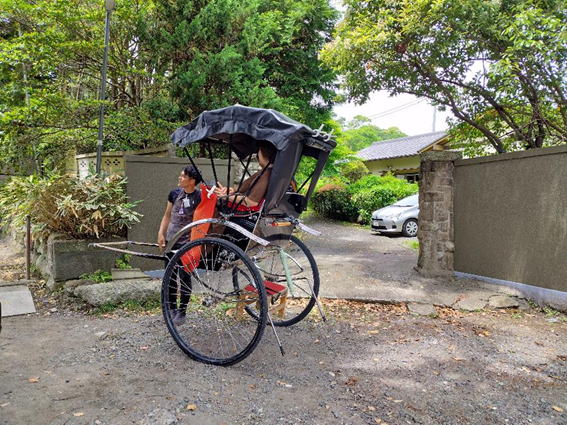 (20)鎌倉英勝寺の手前の寿福金剛寺を説明している人力車。