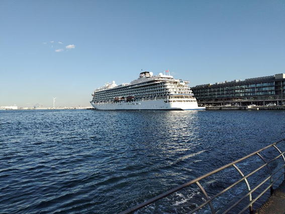 (3)横浜散歩:象の鼻パークからの飛鳥Ⅲです。総トン数52200t 全長230m 最大幅29.8m