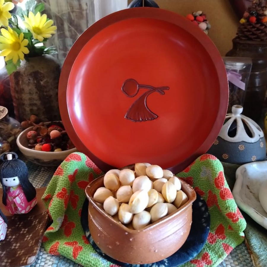 友人が銀杏を持って来て「食べる?」臭いのを我慢して取り出したそう。有り難いことです。紙袋に入れてレンジでチンして食べました。