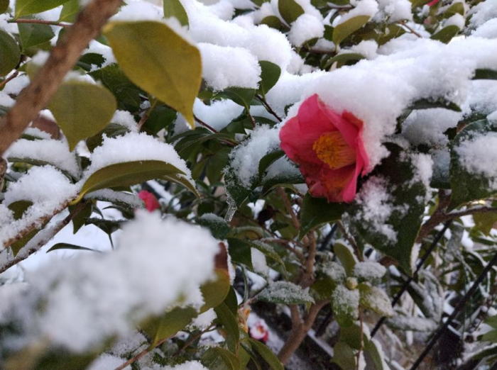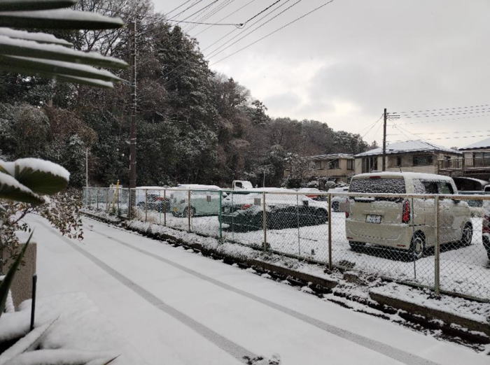 2026年2月9日 初雪です。我が家の庭の雪景色です。2月8日7:00撮影